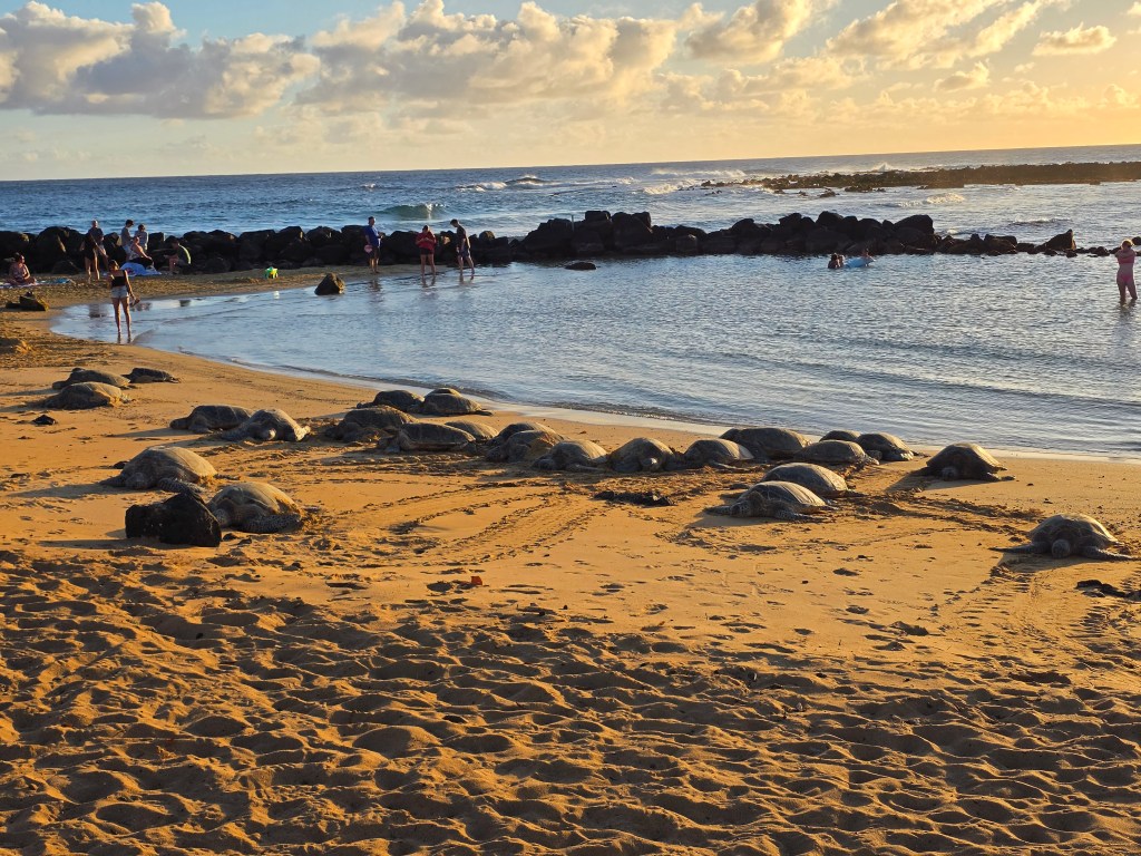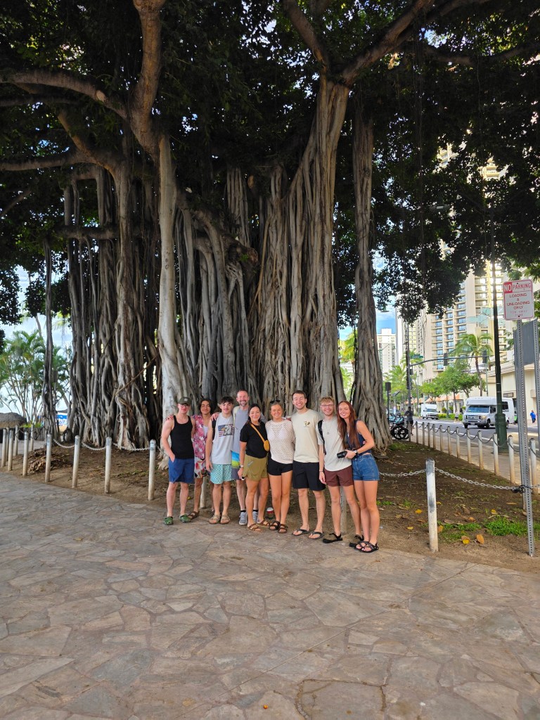 The kids and Joe did get to do surf lessons while I watched 🙂 We went to the Dole Plantation and got to see fields of baby pineapples and eat Dole Whip. They had my favorite trees out front! Painted Eucalyptus trees are so so cool! We went to Pearl Harbor and toured as much as we could without going to the actual memorial. (Reminder to look up really busy tourist areas far in advance to get tickets… ) 🙂 We did a whale watching tour and although we didn’t see any whales close up, we did see sea turtles and dolphins.
