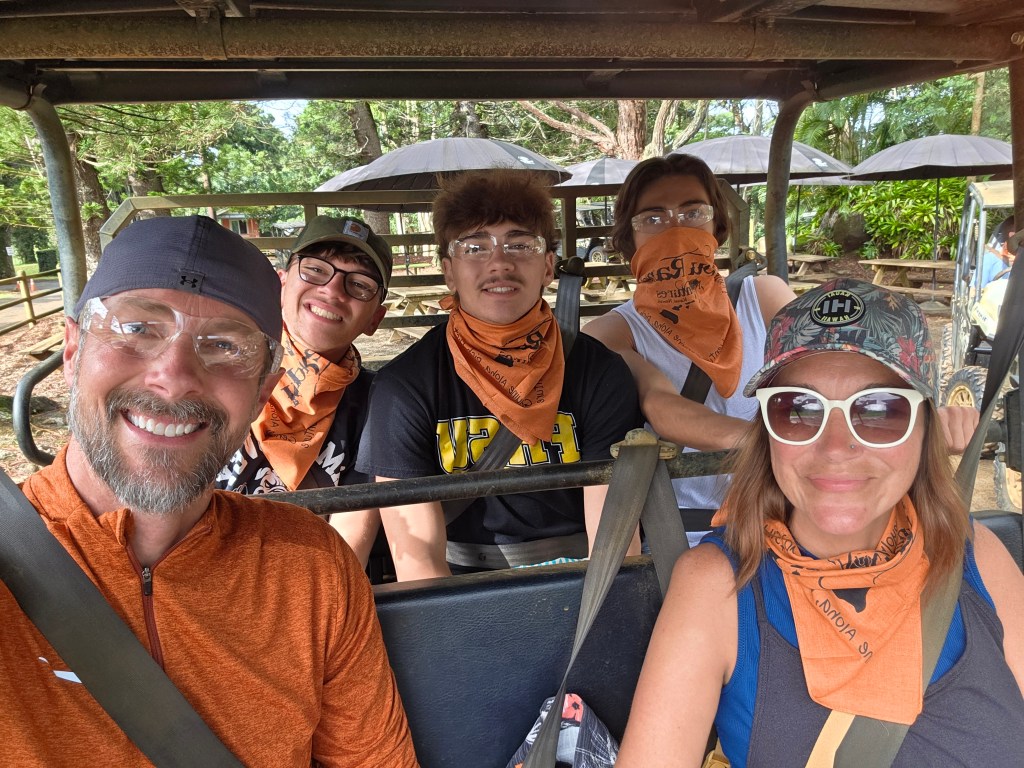 On Kauai we did a super cool ATV tour in an area where lots of movies were filmed including Jurassic Park. That was so fun! The Allerton Gardens were so beautiful. They had these massive Moreton Bay Fig trees that were also in Jurassic Park. Check out Jasper standing almost inside of one of them. And I finally got a gorgeous lei at our really fun luau!