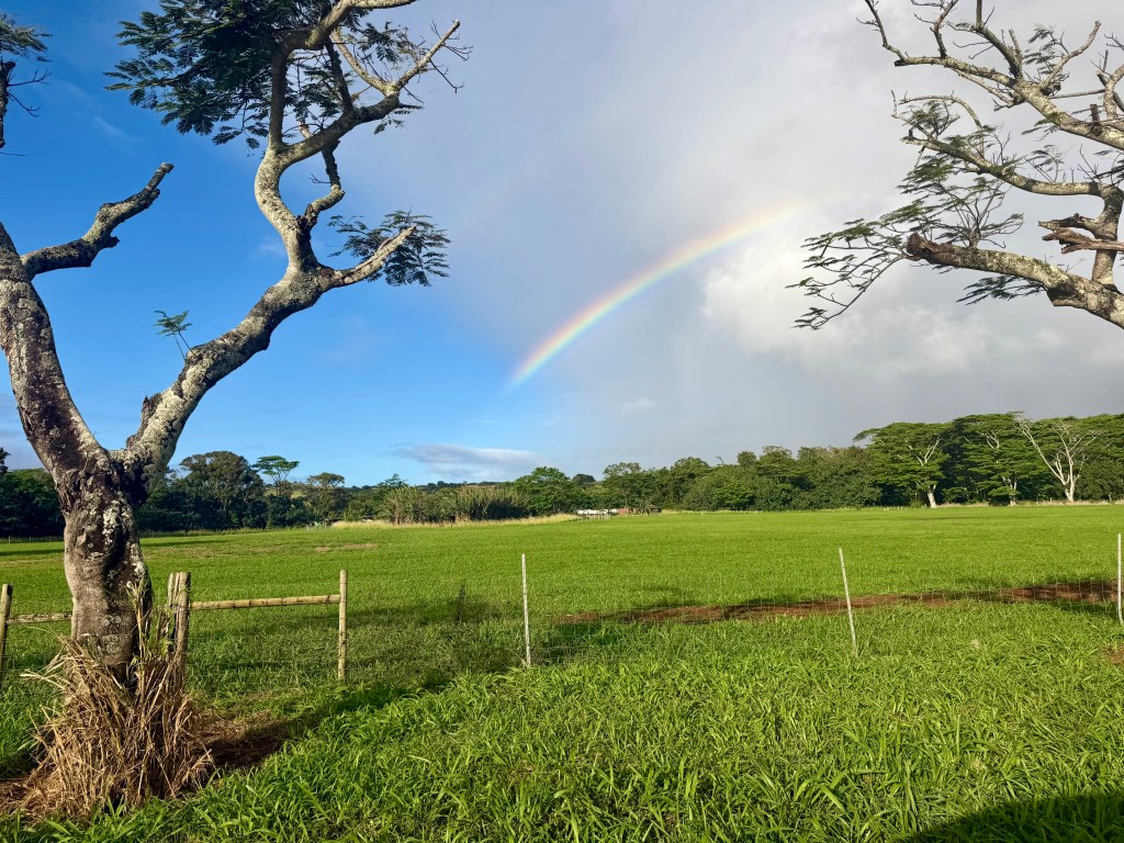 Just a quick impression of my time in Hawaii…. such impressive beauty, green and gorgeous scenery everywhere, chickens all-over-the-place, flowers and lush gardens, reminder of God’s promises in a beautiful rainbow, and all over just a reminder that God loves beauty and color. He has poured it out in these insanely gorgeous islands. I would love to go back someday!